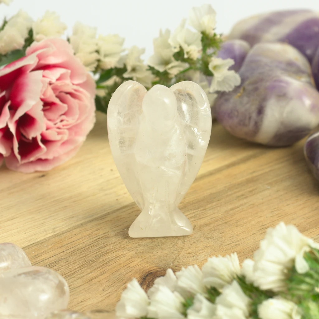 Jeho přítomnost přináší jasnost myšlenek, podporuje soustředění, intuici a propojení s vyššími vibracemi. Křišťálový anděl pomáhá odstraňovat bloky, zesiluje účinky jiných kamenů a je ideální pro meditaci, duchovní práci nebo jen k vytvoření harmonické atmosféry doma či v práci.