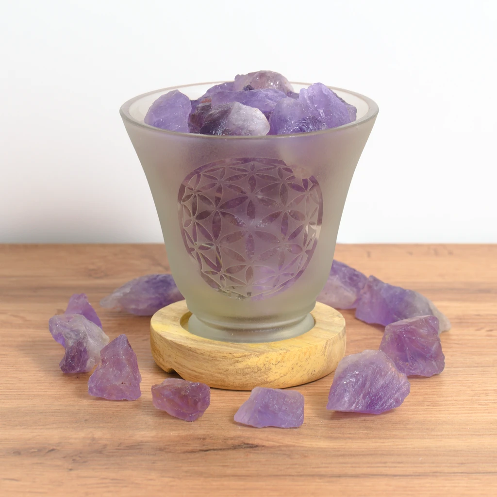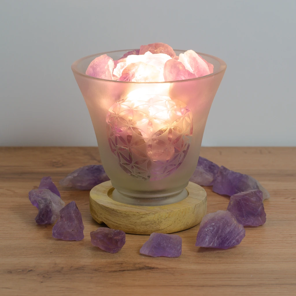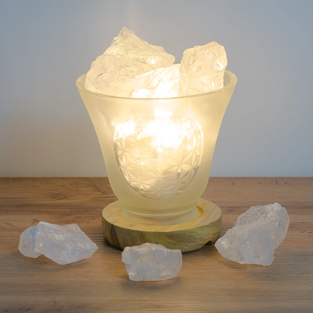 Nasypte do ní drahé kameny, které milujete a sledujte, jak se jejich kouzlo rozzáří ve světle lampy. Květ života nese posvátnou geometrii stvoření, jednoty a dokonalé rovnováhy, a když se spojí s energií kamenů, vzniká výjimečně harmonické vyzařování.