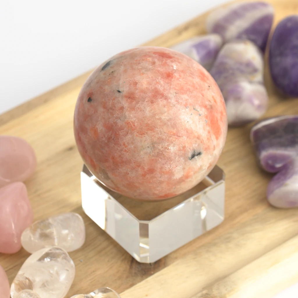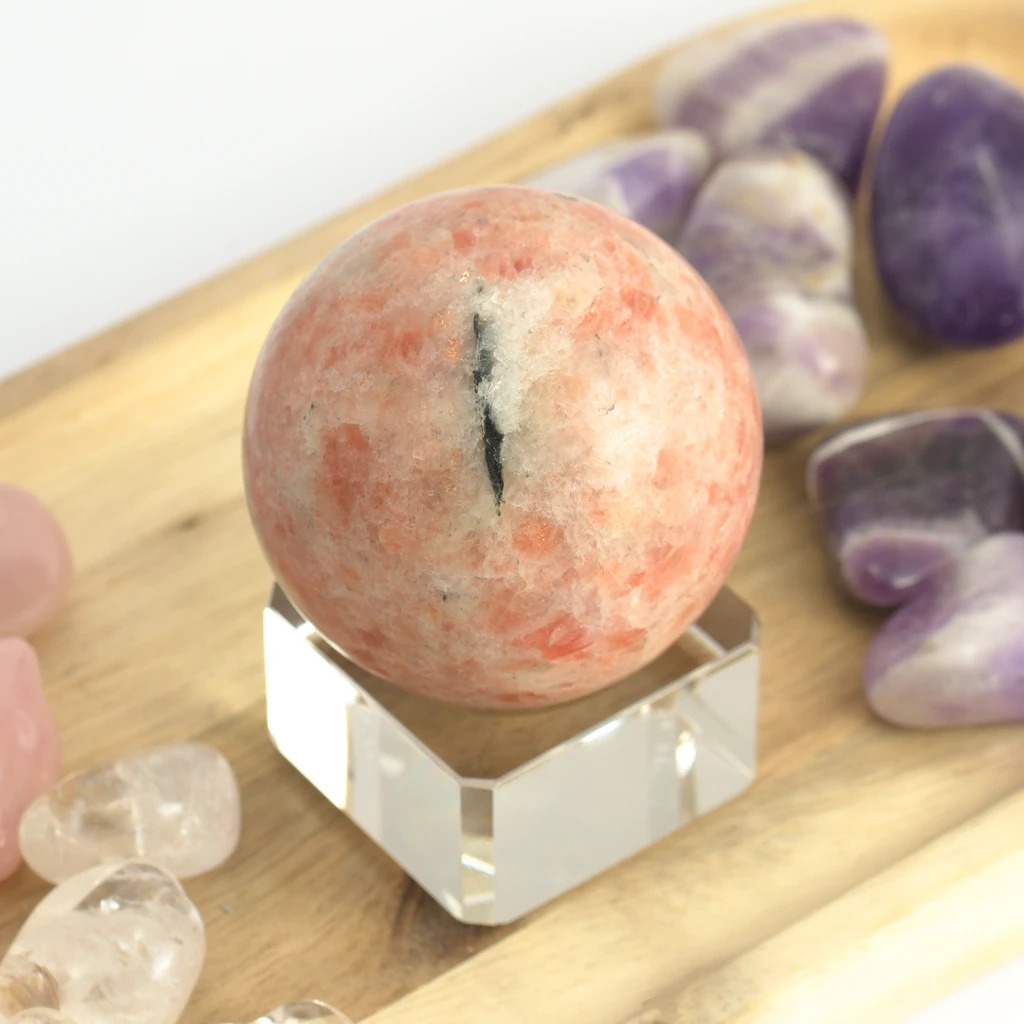 Dotek slunečního kamene v podobě koule nás napojuje na nebeskou energii, jež rozptyluje smutek, odplavuje únavu a rozžhavuje v nás plamen optimismu. Je přírodním antidepresivem, které pomáhá zlepšit náladu, obnovit vitalitu a vrátit chuť tvořit a žít naplno. Koule jako tvar symbolizuje úplnost a harmonii, což zdůrazňuje schopnost slunečního kamene podpořit odvahu být sám sebou, jít vlastní cestou a věřit ve svou hodnotu.