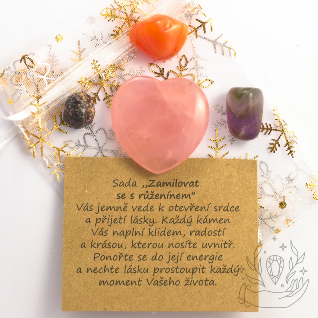 Harmonizační sada „Zamilovat se“ je jemným pohlazením pro Vaše srdce, které Vás vede k hlubokému propojení s láskou, jež pramení přímo z Vaší duše. Každý kámen v této sadě Vás jemně podpírá na cestě k uzdravení, seberealizaci a otevření srdce pro vše krásné a láskyplné, co Vás obklopuje.